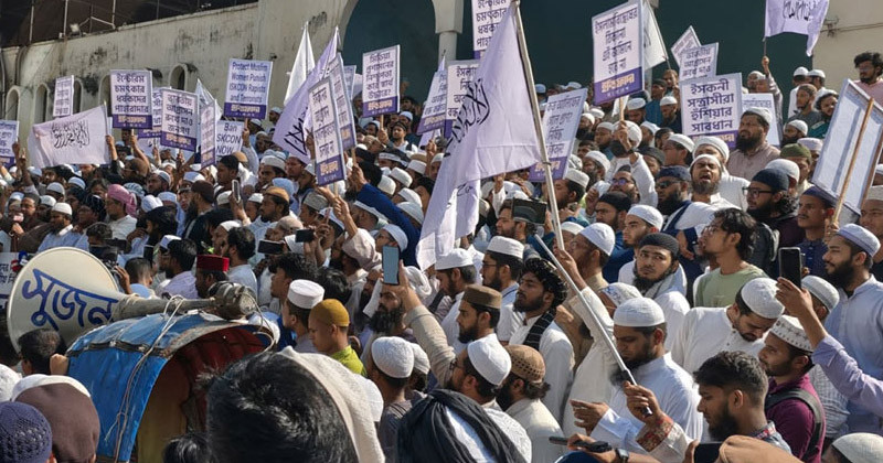 সংগঠনের সদস্য আহমেদ রফিক বলেন, “আজ মুসলিম নারীর ওপর ধর্ষণকে গর্বের বিষয় হিসেবে প্রকাশ করা হয়, খতিব ইসকনের বিরুদ্ধে কথা বললে অপহৃত হয়ে শিকলে বাঁধা অবস্থায় পড়ে থাকতে হয়— অথচ রাষ্ট্র ও প্রশাসন নিশ্চুপ দর্শকের মতো তাকিয়ে থাকে।”